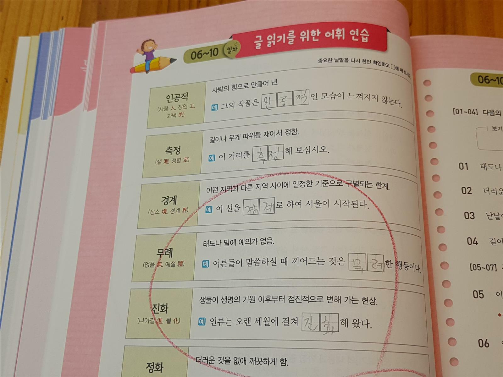 아직 중학교 수준의 국어 어휘력, 독해, 문법을