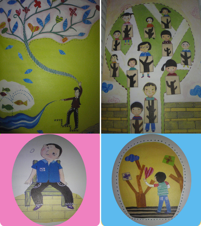 "이 나무는에 지금 너희들이 칠하고 있는 그림들을 완성해서 오려