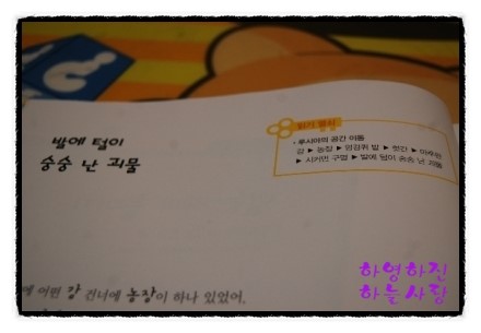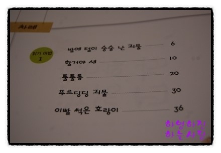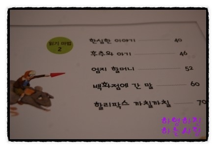 읽기 마법 1단계는 5개의 이야기로 되어 있답니다. 다섯가지 이야기 모두 재미있지만 그중에서 아이들은 이빨 썩은 호랑이 이야기를 좋아한답니다. 반전이 있어 재밌나봐요^^