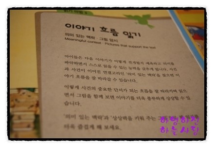 세번째 마법은 흐름으로 읽기입니다. 의미 있는 맥락과 그림암시를 통해 다음 이야기가 어떻게 전개될지 예측하고 의미를 파악하면서 스스로 읽을 수 있는 능력을 갖추게 된다고 하네요. 특히 요즘 교과서가 스토리텔링 형식이라 아이가 글을 읽는다 해도 그 뜻을 알 수 없으면 어렵게 느껴지는데 이야기 흐름까지 파악하며 읽게 된다면 그야말로 금상첨화가 될 것 같아요!!