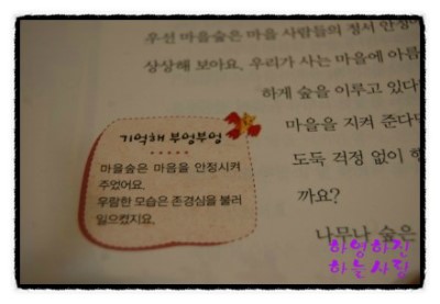 그 다음엔 이렇게 실제 마을 숲을 조상한 사진과 마을이 소개되어 있답니다.