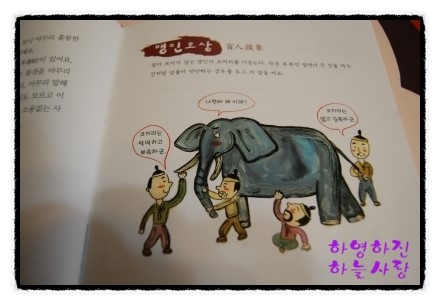 코끼리를 맹인들이 자신이 만져보는 부분만 가지고 설명하는 그림을 통해 아이들은