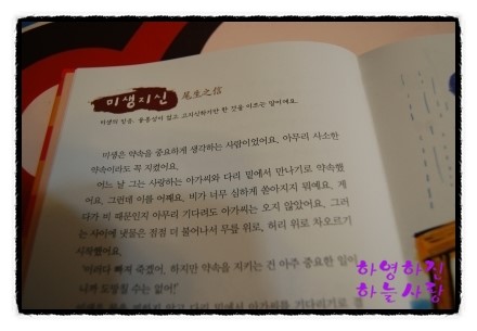 안쪽에도 믿음이 마음이가 고사성어 책을 만들었다는 이야기가 실려있어요!!