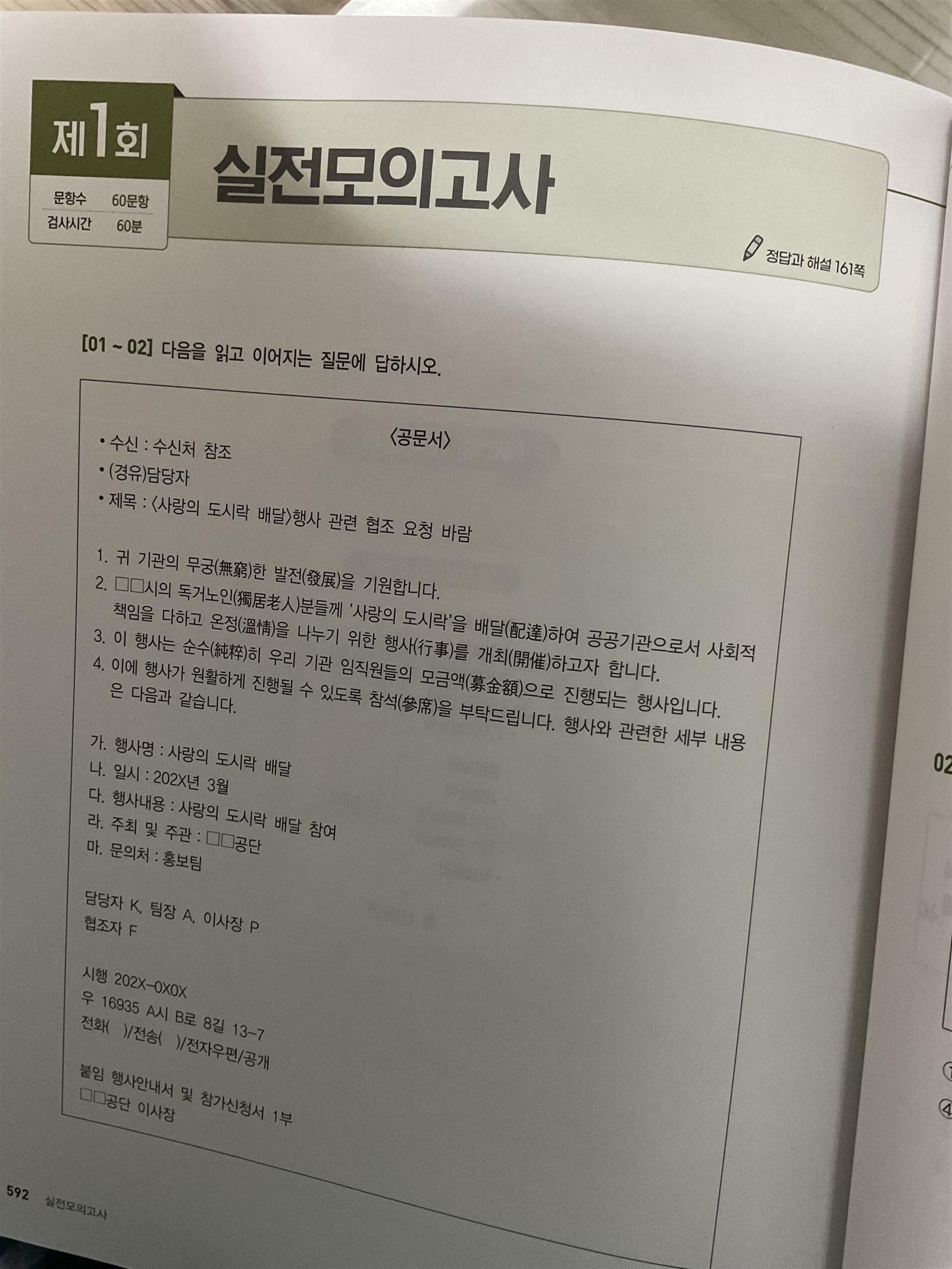 산인공 모듈형과 응용모듈형 필수이론을 포함한 모듈형에 대한 기본학습이 끝났다면 다음단계는 문제풀이라고 생각합니다. 문제풀면서 모듈형에 대한 감을 잡는다면 실전에서 더 수월하게 문제풀 수 있을 것입니다. 먼저 모듈형 NCS시험에 대비하기 전에 최근 채용(출제)대행사 수주현황 안내를 통해 본인이 응시하고자하는 회사의 출제사를 확인하고 파트별로 문제를 풀어보는 것이 좋습니다. 최근 채용(출제)대행사 수주현황 안내는 책 앞쪽에 수록되어있습니다. 파트별로 산인공 모듈형과 응용모듈형 필수이론 바탕으로 출제된 다양한 문제들이 수록되어 있어 모듈형 및 응용모듈형의 유형을 익힐 수 있을 것입니다. 또한, 각 파트별로 앞부분에 대표기출유형문제가 수록되어있어 실제 기업의 모듈형NCS문제를 풀어볼 수 있습니다. 파트별로 문제를 다 풀었다면 다음으로 파트2의 NCS실전모의고사를 풀어보면 좋을 것입니다. 10개의 파트가 실제 시험처럼 출제되었어 이제까지 공부한 내용을 확인하면서 시험 전 본인의 실력 또한 체크 하실 수 있을 것입니다. 맨 뒤에 수록된 답지를 보면 상세하고 꼼꼼한 해설을 확인 할 수 있습니다. 독학하는 수험생들도 부담없이 모듈형NCS를 공부하실수있습니다. 최근 채용(출제)대행사 수주현황 안내 확인하고 산인공 모듈형과 응용모듈형 필수이론을 바탕으로 만들어진 문제들을 풀면서 모듈형 NCS시험에 잘 대비하셔서 모두 좋은 결과 얻으시길 바랍니다!