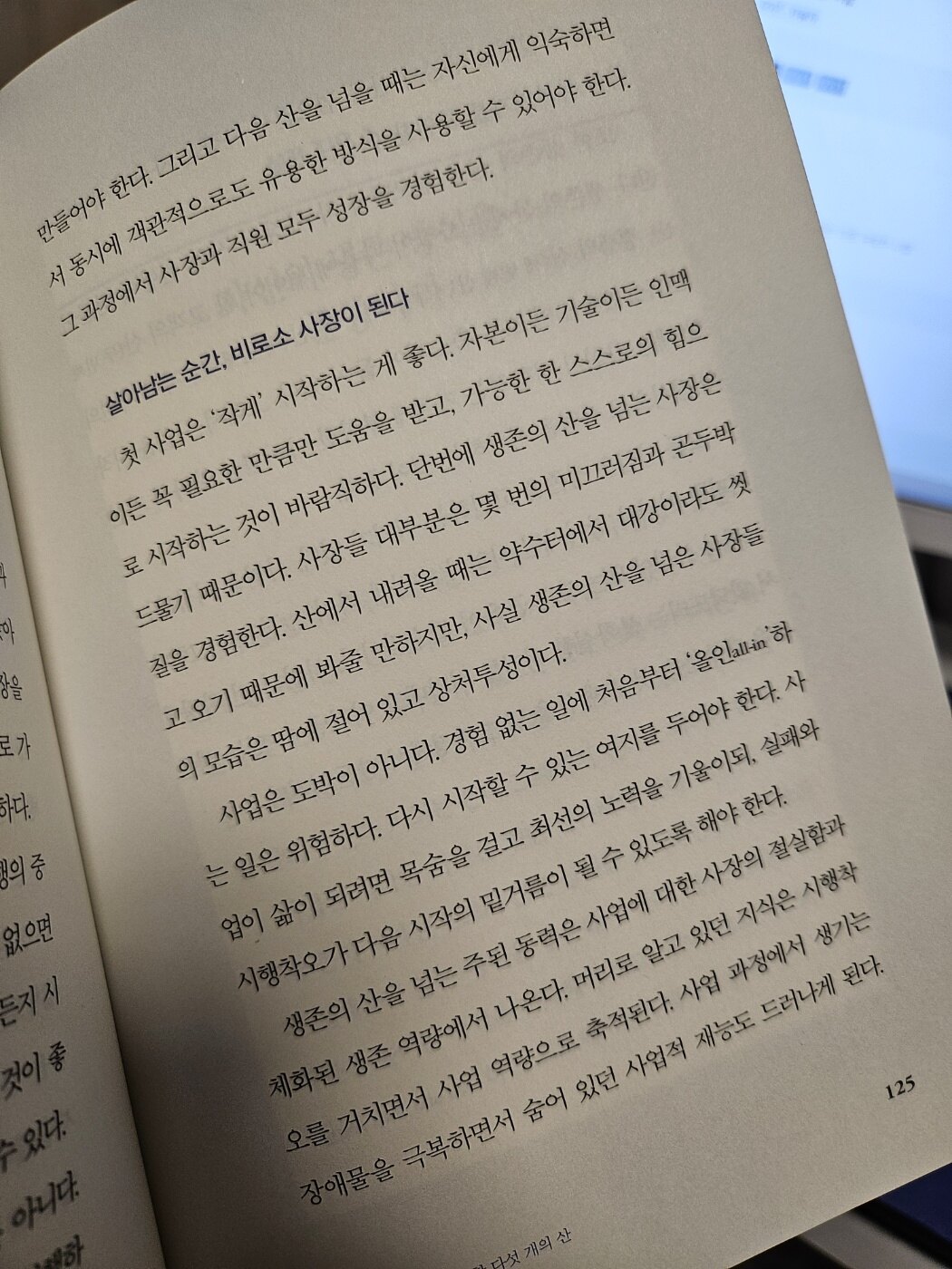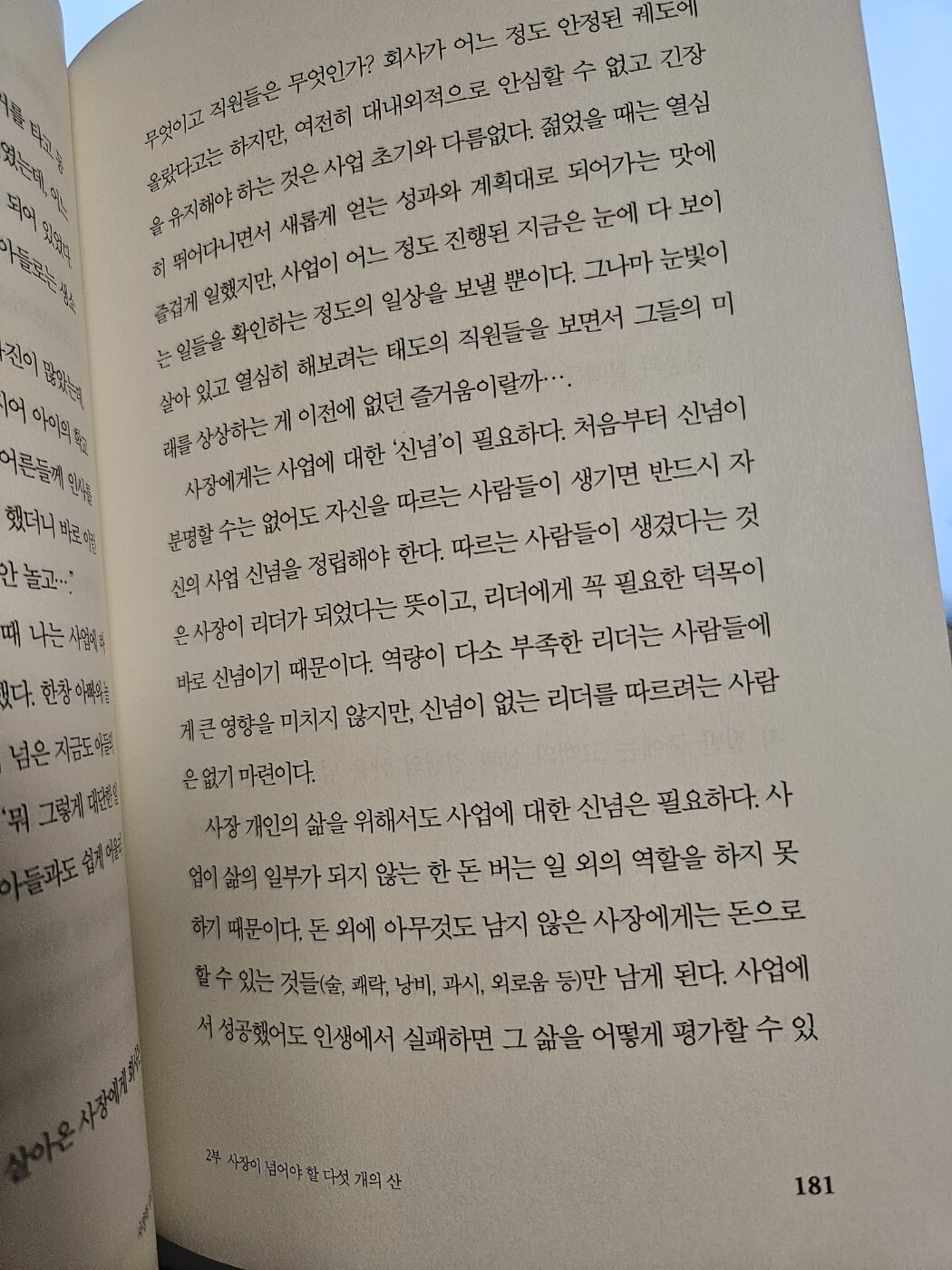 구체적 사례와 상황을 제시하며 피부에 와닿는 실용적인 조언부터, 진취적인 사장이 되기 위한 마인드 셋(mindset) 내용까지 초보 사장들이 반드시 여러번 반복해서 읽고 인지해야할 내용들로 가득하다.