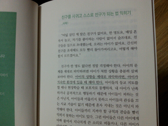 아이가 처한 상황파악을 하고 대처할 수 있는 방법을 구체적으로 알려주고있어서 실생활에서 요긴하게 적용할 수 있을것 같다.