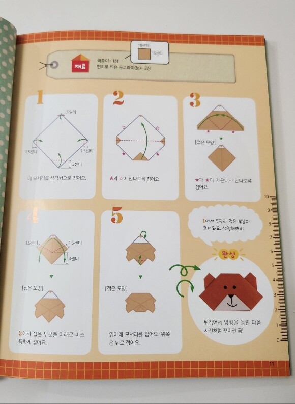 '5번'만 접으면 종이접기가 완성된다는 이 책은 아이들의 집중력을 높이고, 성취감을 주는데 아주 좋을 것 같았다. 책을 열어보니 정말 5번의 순서로 종이접기를 할 수 있도록 분리되어 있었다.