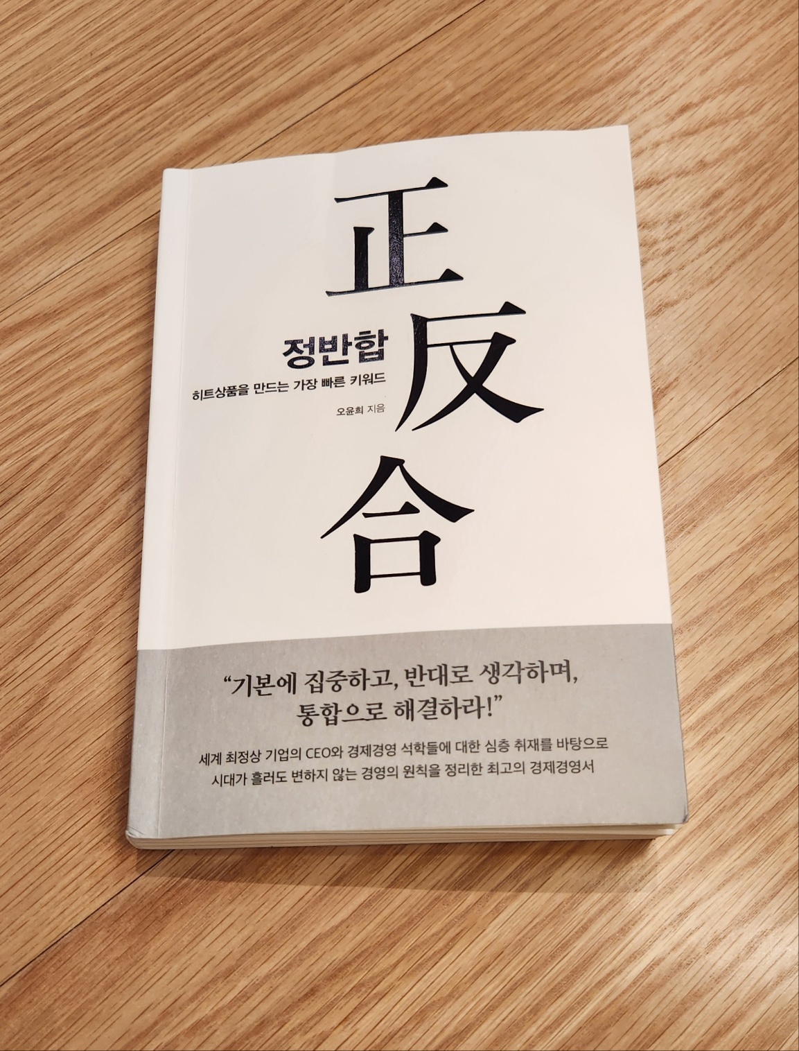 정반합은 독일의 철학자 헤겔의 변증법을 도식화한 것으로 줄곧 유지왜 오던 상태인 '정', 그것을 부정하며 새로운 상태를 제시하는 '반', 모순과 대립을 승화해서 '합'으로 진보하는 것을 말한다. 하나의 이념이나 체제에 의해 움직이다가 그 반동으로 등장한 이전과는 완전히 상반되는 새로운 체제의 영향을 받고, 결과적으로 둘 사이의 균형을 잡아가는 것이라고 한다. 그러니까 이 책의 표지에 나온 "기본에 집중하고, 반대로 생각하며, 통합으로 해결하라!"가 정반합인 것이다.