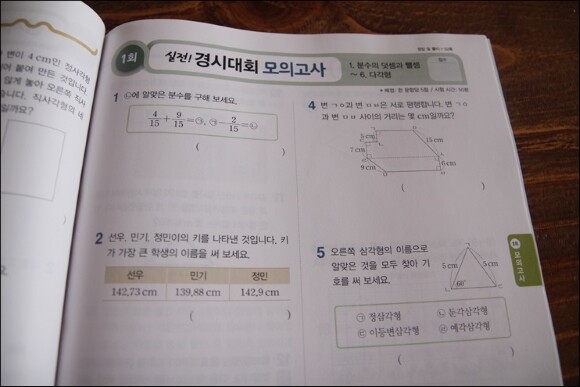 그래서 그 뒤론 이렇게 단원평가 문제집을 이용한답니다