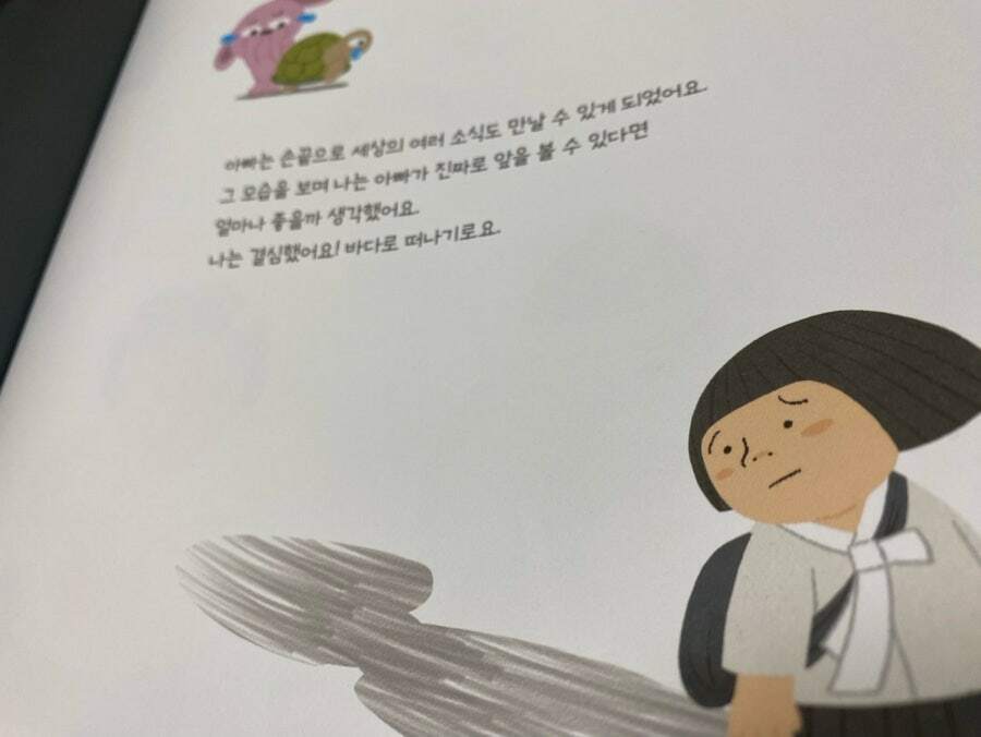 + 출판사: 한림축판사 도서명: 나는 청이 아빠입니다 최수정 그림책 사진1 사진2 청이와 아빠는 사계절이 변화하는 걸 항상 함께 느끼고 즐거워합니다. 하지만 정작 딸인 청이의 얼굴은 보지 못합니다. 그러던 어느 날 부처님께 공양미 삼백 석을 바쳐야하고 그렇게 청이는 바다로 나갈 마음을 먹습니다. 동네 사람들은 청이 아빠가 ㅈ내기 불편하지 않도록 온갖 배려를 다 합니다. 사진3 동네에 사는 다양한 직업군의 사람들이 청이네를 돕기위해 모입니다. 이들의 활약은 앞으로 어떻게 전개될까요? 사진4 사진5 청이는 울며겨자먹기로 그렇게 바다로 떠나고 동네 사람들이 아 좋고 편리한 시설과 배려를 해두었지만 그래도 아빠옆에는 청이가 있어야겠죠!!! 이런 생각이 맞물렸던 동네 특공대는 드디어 바닷 속으로 청이를 구출하러 떠납니다. 그들은 무사히 청이를 구해 돌아올 수 있었을까요? + 우리의 고전 이야기의 흐름 그대로 작가의 상상력을 더해 더 퓽부하고 현대적인 감각에 맞춰 이야기를 새롭게 전개한 내용들 그리고 무엇보다 매력적이었던 그임들이 펼치는 장마다 가득했던 <<나는 청이아ㅃ입니다>> 그림책이 주는 매력이란 이런 게 아닐까? 말로 다 표현하지 못하는 많은 이야기들과 감상들을 마음으로 느끼게 해 주는 것!!! 내가 그림책을 좋아하는 이유다. 아이들만의 책이라고 하기에는 그림책은 많은 울림을 담고있다. 굳이 아이들만의 것이라 치부하기엔 아쉬움이 크다. 그래서 나는 오늘도 그림책을 읽고 그 그림들과 이야기들을 나의 마음에 새겨넣고있다.