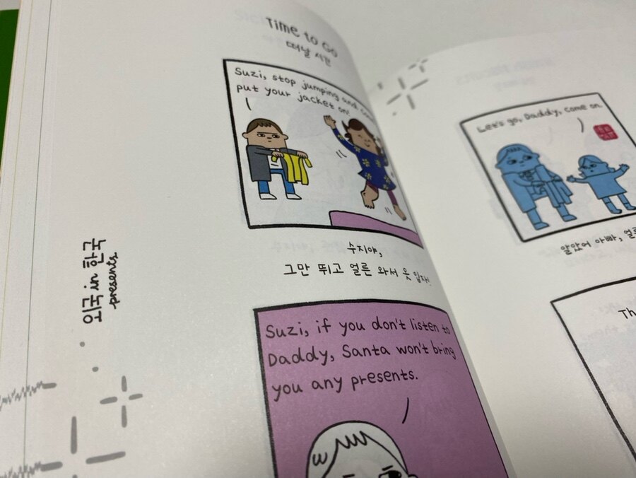 + 출판사: 북극곰 글. 그림: 매튜 즈로드허스트 옮긴이: 박진희 사진1 사진2 영국인 매튜 작가는 2009년 처음 한국에 왔다고한다. 그때부터 지금까니 줄곧 한국에 머물며 15년이란 시간이 담겨있는 책이라고 한다. 외국인이 본 우리나라는 겨울 날씨가 춥지만 밝고 화창하다고 한다. 맛있는 음식과 케이팝 그렇군~ 음식과 날씨는 아무리 인터넷이 연결되고 다야한 플랫폼들 AI가 있어도 어쩌지 못 하는 것 이니!!!! 여행지의 날씨가 그곳의 인상을 좌우하니 날씨만큼 중요한 것은 또 없지!!! 사진3 사진4 따뜻하고 미소를 머금게 하는 글 깔끔하고 담백한 내용!!! 육아를 한 사람들이라면 일부 공감할 이야기들 그리고 나머지는 생활 속 한번쯤은 경험했을 이야기들~ 즉 누구나 쉽게 접근하고 이해하기 좋다. + 세상의 무게도 내 인생의 무게도 무거워ㅈ다보니 지금은 많은 생각을 하는 무거운 주제보다는 누구나 공감하고 미소 한번 짓고 읽어내려갈 수 있는 이야기가 더 끌린다.