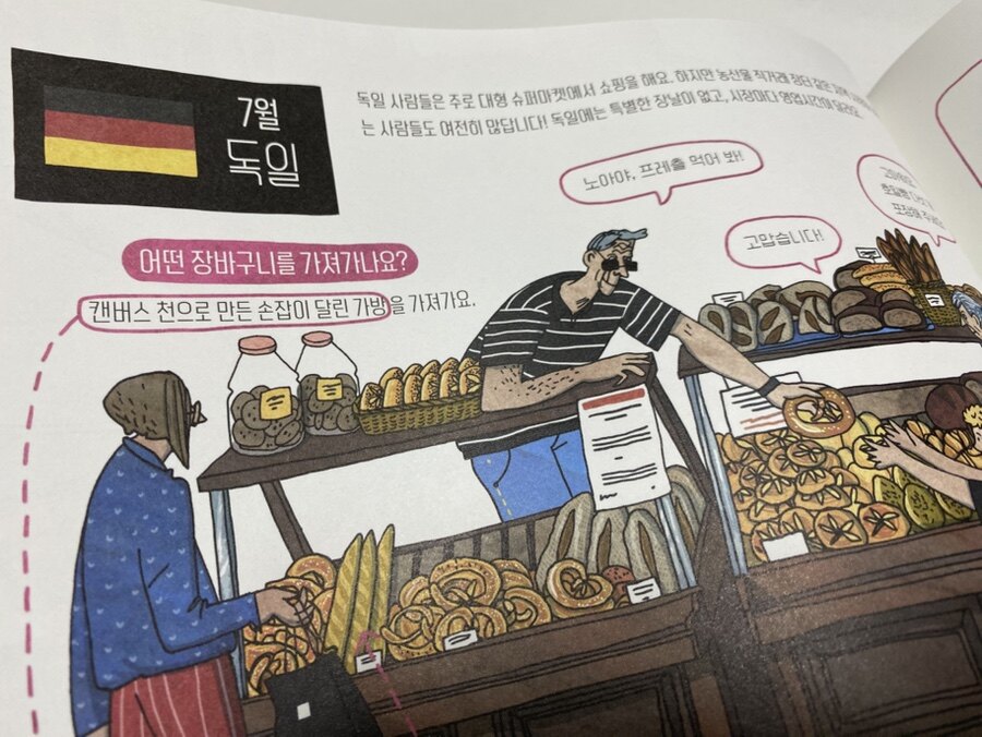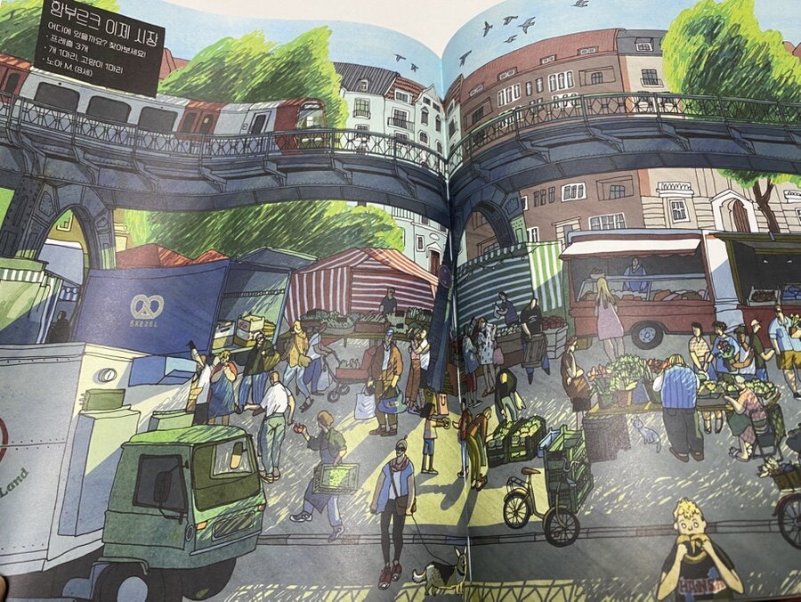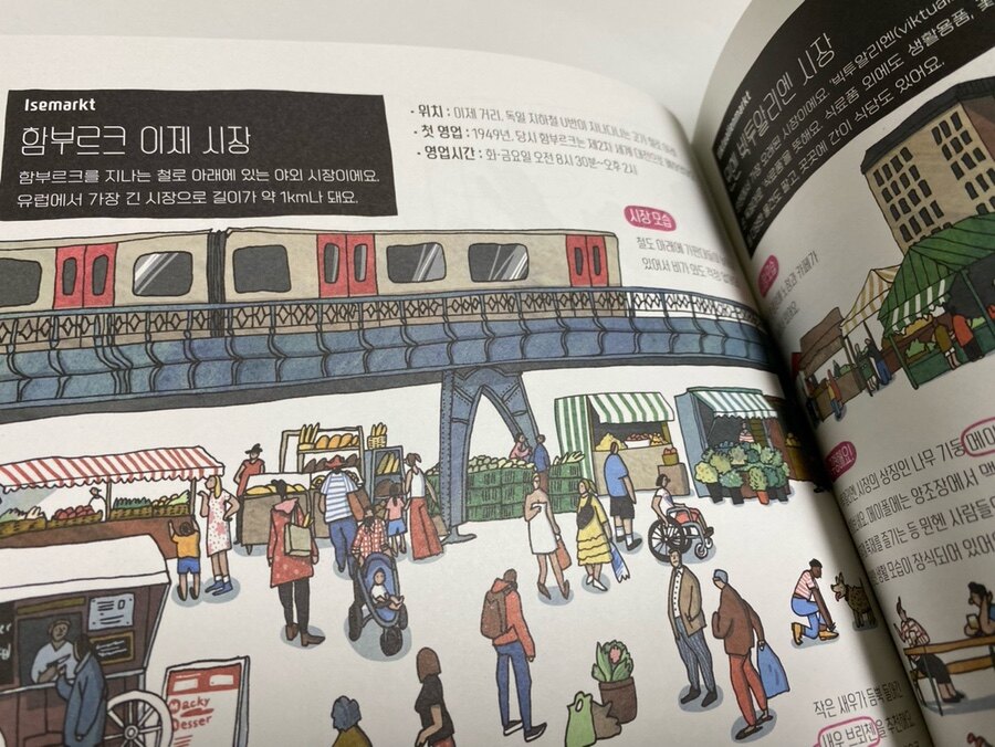 + 출판사: 주니어 RHK 글: 마리야 바하레바 그림: 안나 데스니츠카야 옮긴이: 최현아 #맛있고재밌고독특한전세계의시장 사진1 사진2 내가 좋아하는 독일 그리고 내가 좋아하는 시장 그 두 개가 함께 있는 <<전 세계의 시장>> 각 나라별 시장의 모습과 각 재료들 그리고 우리나라와 그 나라의 물가비교 우리나라에서 볼 수 없는 식재료들 비교는 물론 그 나라 음식을 만들어볼 수 있는 친잘한 요리 레시피도 함께 들어있다. 사진3 사진4 실사가 아니어서 더 매력적인 각 나라의 시장모습 내가 본 독일 시장은 그 어느 페이지 어느 모습을 보더라도 엽서 한 장의 느낌을 주지 않는 것이 없다. 사진5 사진6 간단하게 만들어 볼수 있는 레시피까지!!! 귀엽고 유용하고 매력적인 책이다. 그림책이 주는 매력과 비문학 책이 주는 정보까지 한 곳에 모아둔 책 어른이 봐도 재밌고 아이들이 봐도 재ㅣ있는 책 이번 크리스마스 그리고 겨울방학동안 옆애두고 집에서 세계 시장을 여행해 보면 좋겠다.