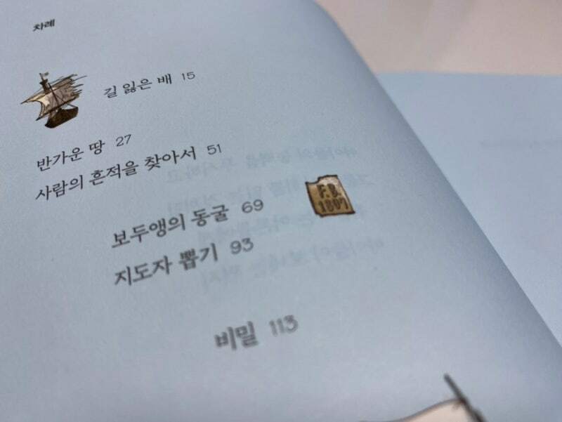 + 출판사: 팡세미니 원작: 쥘 베른 #팡세미니 #쥘배른 #15소년표류기 사진1 수 십 년이 지나고 다시 만나면 어떤 느낌일지 무척 궁금했다. 고전이 주는 설레임일까? 더하기!!! 이 책을 처음 접했던 그 시절의 기억이 사무치게 그리워서랄까~ 그렇게 만났다. <15소년 표류기> 사진2 변함없이 <차례>부터 둘러보며 오늘의 이야기를 시작해야지!!! 사진3 사진4 사진5 그림도 그림을 담아놓은 구성도 예쁘다. 색감없이 글만 들어있는 글들만 계속보다가 그림이 함께하니 마치 글씨들이 움직이는 것같은 생동감이 느껴진다. 힘든 일들이 인생의 고비마다 찾아올 때 항상 동화적 결론이 났음 좋겠다는 생각을 늘 한다. 난 이번에도 어김없이 힘든 상황과 조우했고 또 어김없이 힘과 용기를 얻을 수 있는 책 한 권을 찾았다. 내 현실에서도 이런 비현실적인 마무리가 현실로 이루어졌음 좋겠다. + 15 소년들이 방학을 맞아 슬루기호를 타고 항해를 하기로 한다. 소년들은 선원들보다 하루 일찍 배에 오른다. 선실에서 한참 웃고 떠들다가 잠이 들고 배의움직임이 느껴지고 바다로 배가 나간 것을 알게 되었다. 남은 가족들은 이미 배가 침몰했다고 생각하고 체념한다. 그 후 15소년들은 어떻게 되었을까!! 소년들은 2년만에 다시 집으로 돌아오게 된다. + 책의 백미인 15소년들의 모함 이야기는 책을 통해 만나보면 좋을듯해서 중간 생략한다.