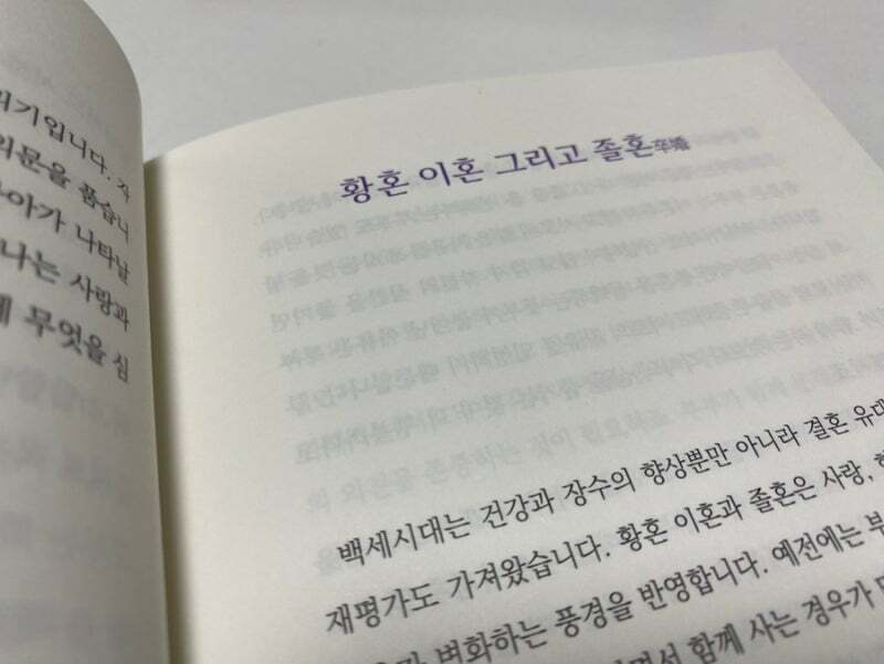+ 출판사: 작가와 비평 지은이: 김영희 #작가와비평 #중년의가치를다시시작 #김영희 #황혼이혼 #피부는데2의뇌 #끝내내는부부 #끝내주는부부 #졸혼 #중년의사치 #중년의사치매력적 사진1 살아온 시간 50년 이런 시간이 나에게도 오는구나!! 어릴적 상상하거나 계획했던 50살은 분명 오지 않을 것같았던 까마득한 시간이었는데 그런 시간이 현실로 나타났다. 한 가지 확실한 건 내가 상상하지도 못 했던 50살의 모습은 분명 지금의 모습은 아니었다라는 것!!! 사진2 총 일곱 장의 큰 이야기로 이루어져있는데 그 중 두 장이 결혼과 성에 관한 것이다. 삶에서 가장 유의미한 부분이니 당연하다. 그리고 중년이라는 무게는 채어남보단 죽음 쪽에 좀 더 가까워서 그런지 죽음의 이야기도 한 장 들어있다. 그리고 한 장은 여생에 대해~ 제목만 보면 중년이 주는 단어의 무게만큼이나 다뤄질 이야기의 무게감도 녹록치 않음이 살짝 느껴지는데 과연 내용은 어떨런지…. 기대된다. 사진3 피부는 신체적인 것과 감정적인 것 사이의 격차를 해소하는 두 번째 외 역할을 한다고한다. 마음만큼 복잡하고 민감한 피부는 스킨십을 통해 감정으로 변환된다. 스킨십의 순간은 제 2의 뇌에 향유를 공급래주는 약활을 한다. 스트레스를 진정. 외로움을 완화. 주변인들과 연결 강화 등 접촉의 언어를 통해 세상과 소통하는 역활을 한다는 것!!! 사진4 죽음에 대한 다양한 시선의 변화가 새롭게 느껴졌다. 특히 수의대신 평상복 입기는 가장 와닿는 건데 나도 그렇게 하고싶다는 생각이 든다. 죽음 자체보다는 살이있을 때 더 의미 있고 멋딘 삶을 살아야한다는 이야기는 진심으로 공감한다. 사진5 황혼 이혼 대신 ‘졸혼’을 선택하는 삶이 늘어난다고 한다. 부부가 서로의 삶을 존중하고 서로의 자유를 인정하기 때문에 늘어나는 형태이지만 서로의 삶을 존중하지 않거나 경제적인 문제를 해결하지 않으면 졸혼이 오히려 더 부부관계를 어렵게 할 수도 있다. 황혼 이혼이든 졸혼이든 부부가 서로 맞지 않아 생기는 문제이므로 서로 공감하는 소통이 중요할듯하다. + 이 책의 가장 큰 매력은 이야기들이 간결하고 길게 늘어지는 구성이 아니라는 점이다. 짧게짧게 마무리되는 소주제의 이야기들은 읽어내려가기 무척 편하고 매끄럽다. 중년의 나이를 넘어서는 시간 쯤에 구태의연한 이야기들 한없이 산만하게 늘어놓는 것보다 간결하고 명료하게 전해주는 이야기 하나하나 매력적이다.