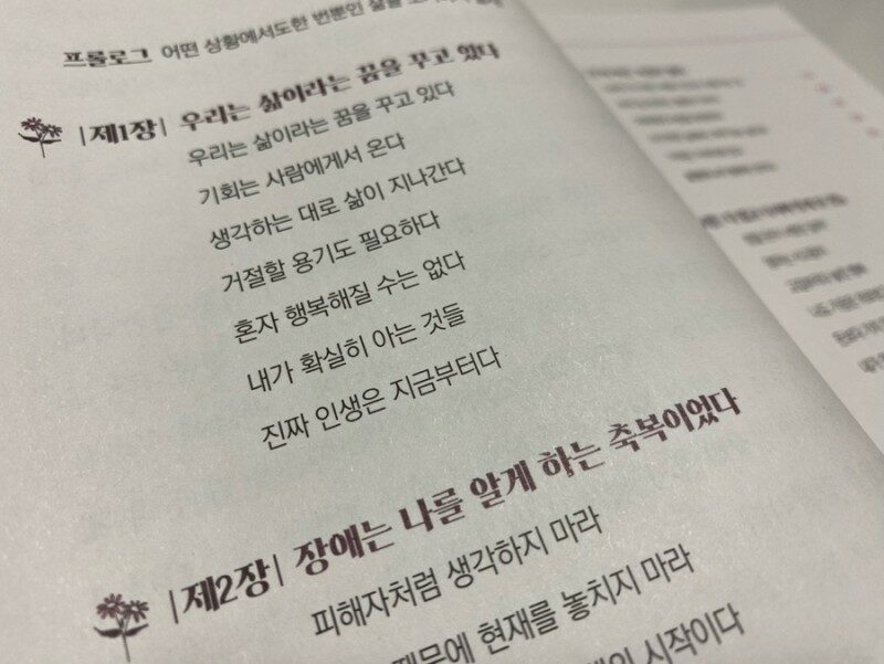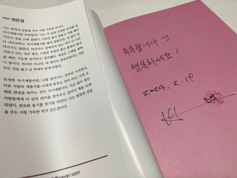 + 출판사: 두드림미디어 지은이: 권은겸 #삶의목적은무엇인가 #권은겸 #두드림미디어 #돈의환란 #돈의굴곡 #김도사 #책쓰기 #인생의나락에서희망찾기 #인생의바닥에서다시일어나기 #복권사기 #주식사기 #사기도박 사진1 사진2 “아프고 힘들었던 나를 찾아 위로와 격려를 해주는 시간여행” “어떠한 시련이 오더라도 포기하지 않으면 신은 내게 선물을 줄 것이다” 제목과 함께 내 마음에 고스란히 들어 온 이 두 문장!!!! 정말 포기하지 않으면 나도 신이 봐줄까!!! 네 인생이 너무 안타깝다며 어깨를 토닥여줄까? + 작가 친필 사인은 언제나 감동스럽다. 책을 펼쳐 들자마자 꾹꾹~ 눌러 쓴 친필 사인이 들어있다는 것이 얼마나 감동스러운지!!! ‘김도사’의 책을 나도 읽은 적이 있는데 지은이 역시 그 분의 책으로 시작된 인연이 지금 책을 내게 된 계기가 되어준 것 같다. 글의 힘이 말 보다 강하다는 것은 잘 알지만 참 놀랍다. 누군가에겐 인생을 다시 되돌아 보며 새로운 꿈과 희망을 주었고 또 누군가에겐 그런 그의 글을 보면서 새로운 위로와 위안을 받았으니 말이다. 사진3 늘 그렇듯 읽기 전 단계는 <차례>부터 훑어보는 것!!! 차례를 살펴보면 어떤 이야기들을 책이 담고있는지 힌트를 얻을 수 있기 때뭉이다. 사진4 사진5 이 책은 뭐랄까!!! 제목만 보고 이론적인 이야기들이지 않을까 생각했다. 어떤 이론으로 이야기를 해나갈지 어디 한번 보자라는 생각으로 읽기 시작하다가 단순에 반 권을 읽어버렸다. 일단 문단 띄여쓰기가 넓게 과감히 되어있어서 가독성이 무척 좋았고 내용이 다소 스팩타클하다고 할까!!!! 무척 흥미로웠다. ‘감사’를 느끼는 삶의 소중함 그 어떤 것도 하고싶은 것을 꺾을 수 없다는 의지! (돈의 유무. 나이의 많고 적음 등등) 글쓴이가 겪은 이야기들이 때론 너무 담담해서 더 가슴을 울렸고 때론 긴장감이 넘쳐 함께 요동치는 심장을 쓸어내리기도 했다. + 어린 시절의 가난과 역경 성인이 된 후 이루어진 다양하고 폭넓은 돈에 대한 굴곡까지!!!! 한 챕터를 마무리하면서 내 머릿속에 이 책이 도움되겠다는 생각을 들게 한 사람이 있었다. 인생의 바닥을 나리 꽂고 있는…. 어쩌면 지은이 보다 더 끝없는 나락을 경험했고 지금도 추락 중인 한 사람!!!! 지은이의 용기와 그래도 삶은 감사하단 것을 좀 보라며 알려주고싶은 사람!!! 읽어내려 갈 수록 참 마음이 편안해졌다. 읽는 내내 마음이 함께 울렁거리기도 했지만 분명 위로가 되어주는 책이었다.