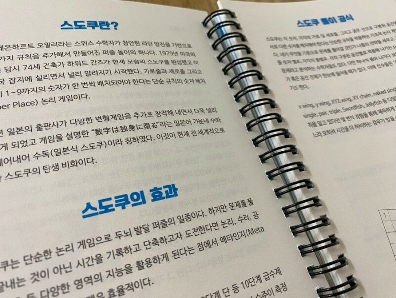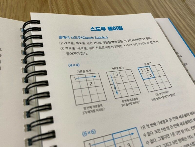 + 출판사: 두드림엠앤비 저자: 한국창의사고력협회 #두드림엠앤비 #한국창의사고력협회 #도전스도쿠왕 #스도쿠 #창의사고력 #집중력 #퍼즐게임 사진1 앱으로 즐기던 스도쿠~!!! 종이책으로 만나는 건 더 즐거운 시간이 된다는 사실!!! 수학 좋아하고 숫자좋아하는 우리집 청소년들 공부하다 머리식힐 때 하라고 픽!!! 쉬면서 놀면서 집중력과 두뇌활동도 멈추지않길바라면서~!!! 사진2 사진3 <스도쿠란?> 18세기 레온하르트 오일러라는 스위스 수학자가 창안한 라틴 방진을 기반으로 몇 가지 규칙을 추가해 만들어진 퍼즐 놀이 1979년 미국의 건축가인 하워드 간즈가 지금의 스도쿠를 완성했다. 3*3칸에 1-9까지 숫자가 한 번씩 배치되어야하는 단순 규칙의 숫자 배치 논리 게임 <스도쿠의 정의 및 효과> 논리. 수리. 공간.추론 등 다양한 영역의 지능을 ㅎ할용하게 된다는 점에서 메타인지력 개발에 매우 효율적이다. <스도쿠 풀이 공식> 각 숫자 각각의 가로 및 세로줄 그리고 굵은 선으로 구분된 공간에 서로 다른 숫자를 배치해녀한다는 규칙적용 내가 무엇을 기준으로 문제를 풀오갈 것안가 나름의 전략을 세우고 그 전략을 숫자별. 각각의 줄별. 각각 구분된 공간별로 적용!!! 숫자 전체가 혹은 공간 전체가 한 눈에 들어올 때가 있다. + 그리고 풀이방법까지 고스란히 들어있는 책 사실 그동안 스도쿠라고하면 정사각형 안에 가로세로 수를 채워간다는 막연한 풀이법만 알고있었지 이렇게 자세하게 맘먹고 알려주는 책을 만나보질 못 했다. 일단 정독부터 하고난 후 우리집 청소년들과 더불어 함께 시작해보도록 해야겠다!!! 사진4 사진5 사진6 서진7 규칙/ 불규칙/ 초보자/ 킬러/ 선수권대회 스도쿠까지 능력에 맞춰 다 ~ 해볼 수 있어서 좋다.