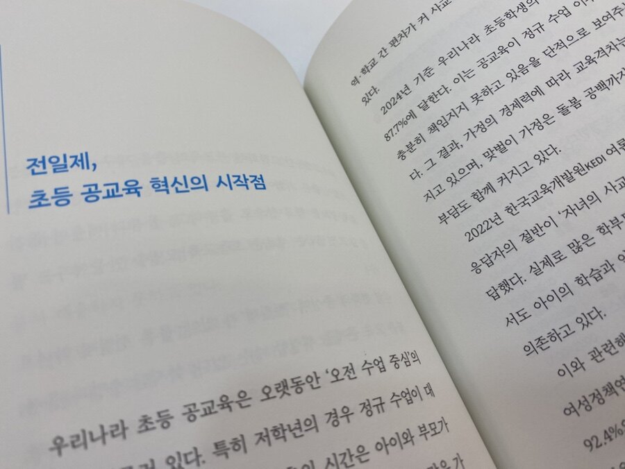 + 츨판사: 한울림 지은이: 장윤숙 도서: 초등 전일제가 답이다 사진1 사진2 그동안 궁금힜었던 초등 전일제에 대해 일목요연하게 알려주는 책이다. 우리나라에서만 유독 강한 사교육은 공교육이 흡수하는 대안을 제시하면서도 쉽게 바뀌지 않는 현실이 무엇인지 그리고 그 개념과 다른 해외의 사례를 들어 초등교육에서 학부모와 학생들의 요구가 무엇인지 생각해 보게 하는 내용을 담고있다. 이런 책들은 정책 입안자들이 좀 봐줬음 하는 바람도 있다. 실제 교육의 헌장에서 필요한 것들과 정책을 만들고 시행하는 과정에서는 당연한 괴리감이 존재하기 마련이니까!! 사진3 사진4 내가 알고싶은 부분들 먼저 선택해서 하나 둘씩 그 궁금증을 풀어가는 것도 이 책을 읽는 요령이다. 사진5 책의 후미에는 초등 전일제에 대한 궁금증 7가지에 대한 QnA가 들어있어서 속시원한 대답까지 들어벌 수 있다. + 맞벌이 부부의 자냐들. 한 부모 자녀들 등 사교육 시장으로 아이들을 돌릴 수밖에 없는 헌실 속이서 초등 전일제에 대한 확실한 대안을 제시하준다면 부모는 아이를 믿고 맡겨두고 일을 할 수 있고 학습의 격차 또한 줄여갈 수 있을거라 생각한다. 물론 그동안도 이런 노럭을 하지 않은 것은 아니겠지만 교욱현장에서 부족하다 생각한 부분들이 있었으니 계속 회자되는 것이리라 생각한다.
