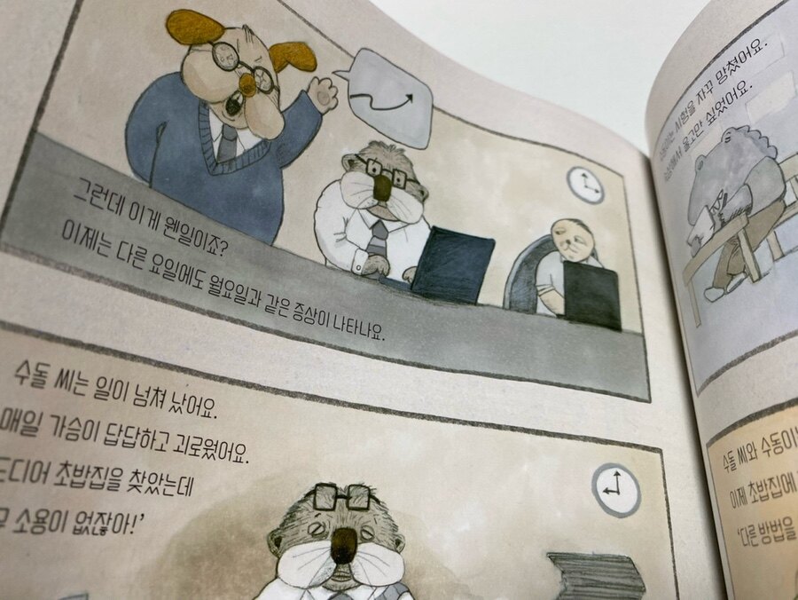 + 출판사: 다 (도서출판 키다리의 그림책 브랜드입니다) 지은이: 조윤주 사진1 사진2 일요일 아침부터 나의 모습 다음 날이 월요일이라는 것에 대한 심리적 부담감 역시 나의 일상을 그대로 반영한 그림책 그림책을 왜 아이들만의 소유물이라 생각하는지 모르겠지만 참 어리석다는 생각이 든다. 말로 다 표현하지 못하는 그 깊고 심오한 언어가 그림인 것을!!! 한 컷으로 담아내는 그 깊은 맛~ 사진3 사진4 그들의 낙이었던 초밥집이 문을 닫고 여기저기 다니면서 그 초밥 맛과 비슷한 곳을 찾어내지만 이제 그들은 월요일같은 일주일을 내내 보내면서 힘든 시간응 보낸다. 적어도 나에게 초밥이란 쉼 휴식이었던 것 같은데… 결국은 찾아냈어. 사진5 초밥과 같은 힘을 결국 그들은 다양한 활동을 통해 얻는다. 캠핑응 하고 바닷가를 가고 놀이동산을 가면서~ 나에게 하나를 선택하라면 난 망설이지않고 집에서 그냥 있기를 선탁했을텐데…. 그림책에 들어있는 가족들의 모습이 마냥 귀엽고 예뻐보이는 것은 비단 나만 느끼는 감정일까? + 그림책이 주는 매력만으로도 주말을 보낸 나의 월요병은 치유되는 느낌이다. 올곳이 집에서 내가 하고깊은 일들을 하고 보내는 주말의 그 행복감!!! 각자의 방법으로 진정한 초밥을 찾아갔으면 좋겠다.