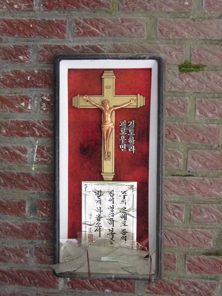 누가 이 정류장에 이렇게 십자가를 가져다 두었을까?