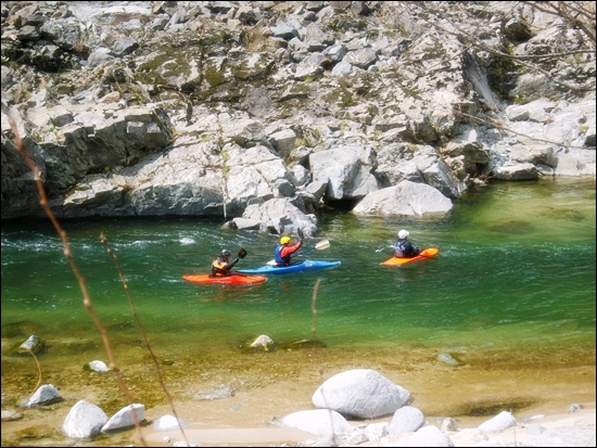 미산계곡에서는 카약이나 리버버깅등을 즐길 수 있다.