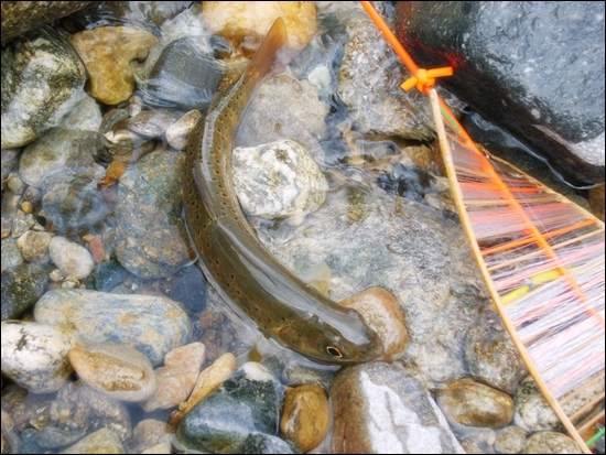 미산계곡에서 볼수 있는 열목어다. 천연기념물로 손맛을 본후 바로 놓아준다.