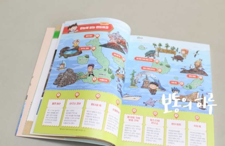 살아있는 자연사박물관이라고 불리는 갈라파고스제도에 대해서 만화를 통해서 이해하기 쉽게 잘 정리되어 있을뿐만 아니라 챕터가 끝날때마 알아두면 좋은 지식들도 정리가 되어 있어서 읽기만 해도 갈라파고스에 대해서 많은것들을 배울 수 있어요.