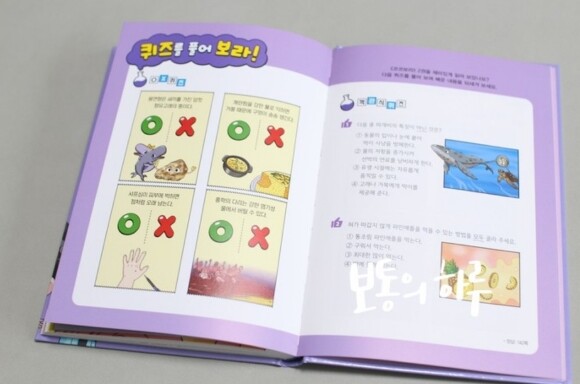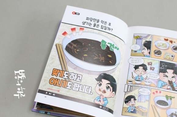짜장면을 먹다보면 물이 생기는 경우가 종종 있는데 그게 침인지에 대한 질문도 나와있었어요. 아이도 가끔 궁금해해서 물어본적이 있었던 터라 호기심 가득한 표정을 읽어나갔답니다. 이뿐만 아니라 생생한 사진을 통해서 앞서 나와있던 지식들을 더 잘 알 수 있게 설명도 나와있으며 마지막에는 퀴즈를 통해서 잘 읽었는지 체크도 할 수 있어요.