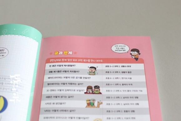 책을 읽고 나면 간단한 몸풀기 퀴즈와 호기심 레벨업을 통해서 배운것들을 확인해볼 수 있으며, 교과와도 연계가 잘되어 있어서 학습에도 많은 도움을 받을 수 있어요. 특히 평소에 책 읽기나 과학을 어려워했던 친구들이라면 누구나 재미있게 볼 수 있답니다.
