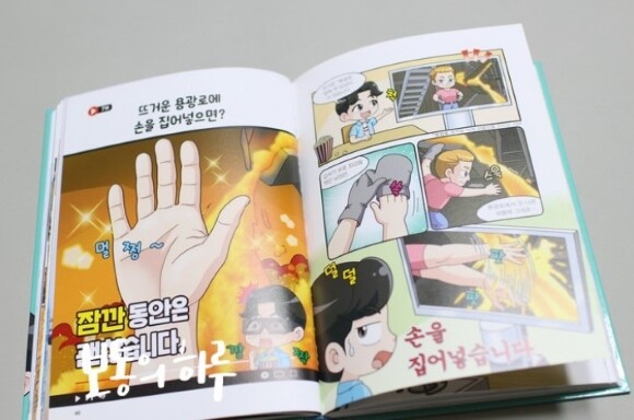 뜨거운 용광로에 손을 집어넣으면? 이라는 주제만 봐도 어떻게 될지 너무 궁금한데요. 이해가 쏙쏙 될 수 있는 그림과 함께 자세하게 나와있어서 시간가는줄 모르고 책을 읽게 된답니다. 평소에 과학에 대해서 관심이 많았던 친구들도 그리고 그렇지 않은 모든 친구들이 재미있게 읽을 수 있는 과학만화책이에요.