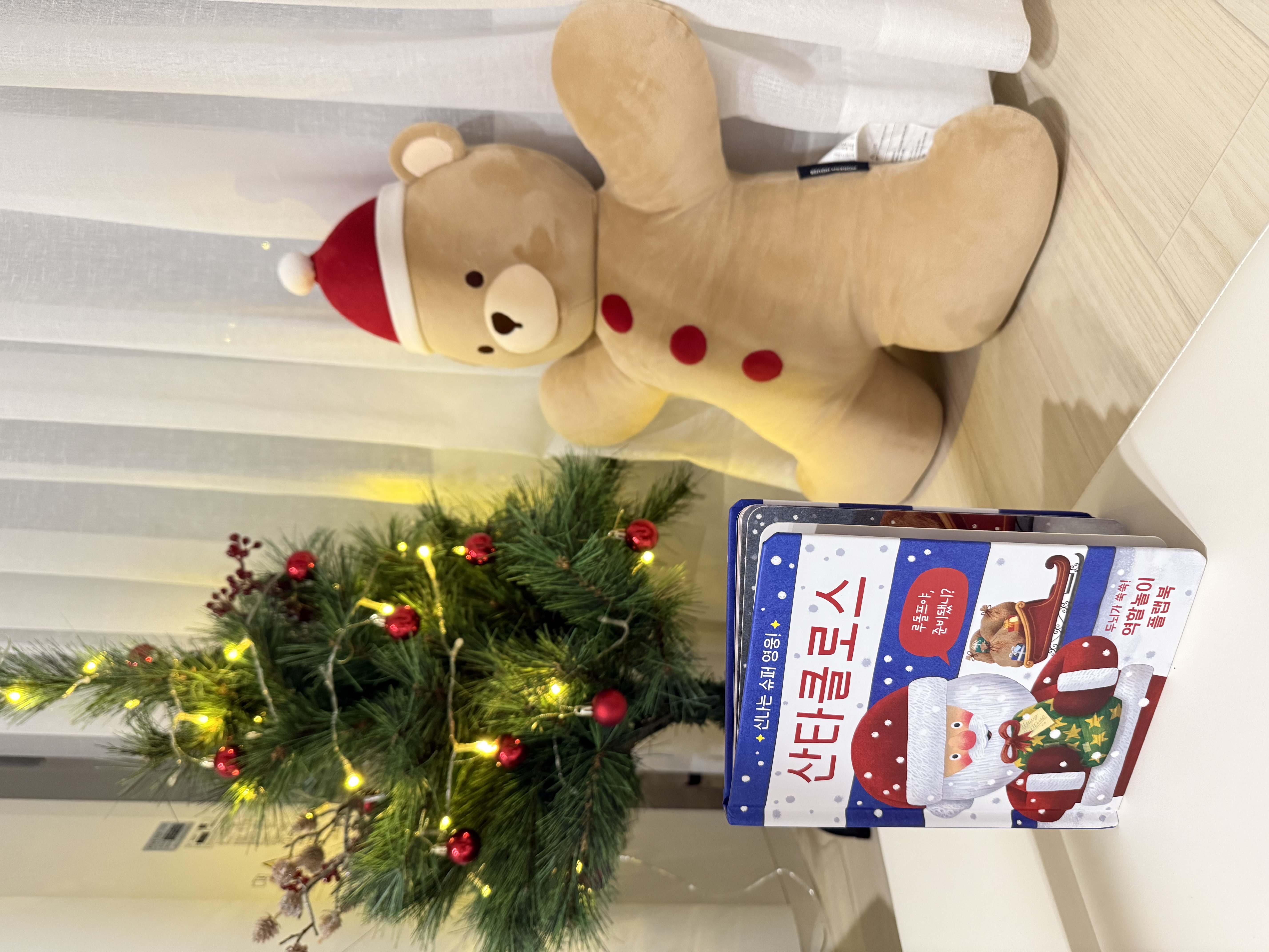 9개월 아이 키우고있는 엄마에요크리스마스 관련된 책이 없었는데이렇게 플랩북으로 놀이형태로도 활용할 수 있어서 좋았어요산타클로스에 대해서 알아보는 시간도 즐거웠습니다목가누고 앉아있는 시점의 아이에서부터누워있는 아가들도 누워서 보기 좋은 것 같아요. 크리스마스 이벤트 때는 매번 활용해서 보여줄거같아요~
