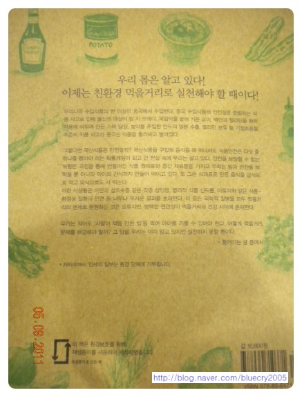 친환경 음식백과라는 타이틀에 구성을 맞추어 책 자체도 다 재생종이를