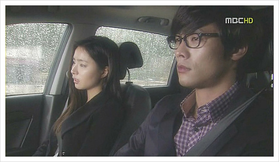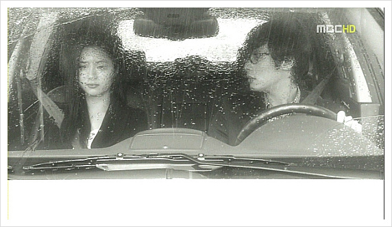 <시크릿가든>에서 가장 중요한, 같은 구도의 두 개의 이미지. 김주원은 길라임 아버지의 장례식장에서 잠들어 있는길라임 옆에 나란히 눕는다.(아래) 미간에 손을 올려보지만 그녀는 혼곤하게 잠든 채 깨지 않는다. 다시 스턴트팀의 엠티에서 잠들어 있는 길라임 옆에 누워 그녀를 바라보는 김주원.(위) 마치 수면 위에 손을 갖대 대 파문을 일으키는 모습을 연상시키는 이 장면에서, 김주원이 미간에 손을 댔을 때 길라임은 잠에서 깨어난다. 플롯과 스토리의 관계에서 두 이미지의 시간적 배치는 역전되어 있다. 김주원의 기억 깊은 곳에 있던 아래의 이미지는 드라마의 최종회에서야 드러난다. 위의 이미지는 아래 이미지의 재현이자 반복이다. 사랑에 관한 운명론적 또는 결정론적 시각을 차용하고 있는 신화적 알리바이. 망각 저편에 놓여 있던 김주원의 길라임에 대한 레미니상스(reminiscence). 응시, 망각되었던 기억의 재현, 잃어버렸던 자아-이상과의 재회, 그래서 거울의 텍스트.
