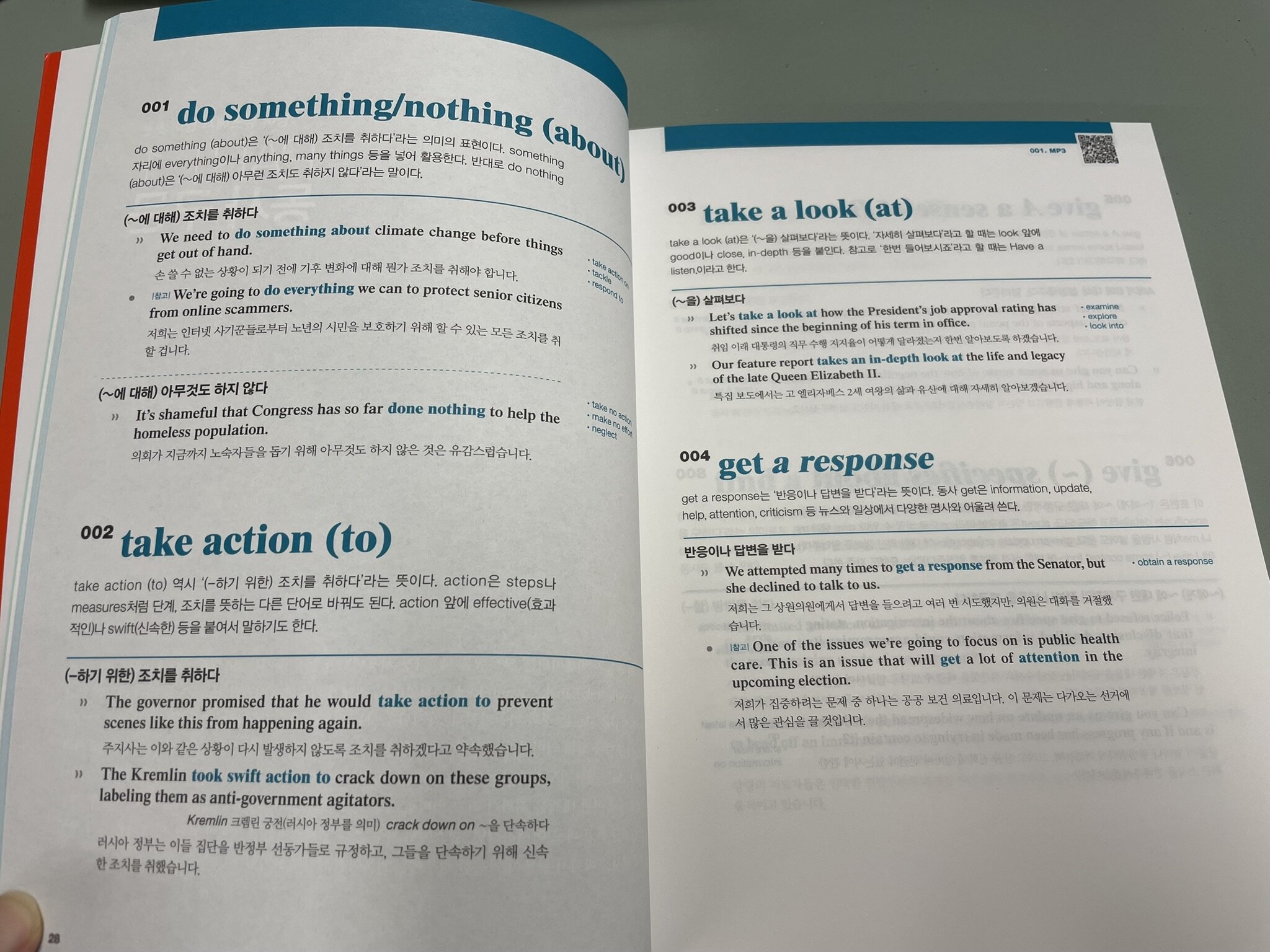 미국 뉴스 스크립트 빅데이터를 분석해 자주 쓰이는 동사 구문과 구문 패턴, 이디엄을 정리했으며, 관련 대체 표현까지 풍부하게 제공한다. 이를 통해 같은 의미를 다양한 표현으로 사용할 수 있게 되어 영어표현력이 확장되는 것을 느꼈다. 또한 MP3 음원과 실제 뉴스 영상을 통해 학습한 표현을 실전에 적용할 수 있는 감각까지 익힐 수 있었다.