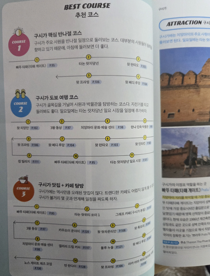 가이드북에서 가장 중요한 것은 결국 지금 이 정보가 맞는 정보인가 인데, 2026년 최신판답게 비교적 최근 기준의 정보가 반영되어있어 카페, 맛집, 숙소 등 실질적으로 도움이 되는 내용들이 많다. 또 일정별, 테마별 추천 코스도 함께 소개해주고 있는데 나처럼 결정장애가 있는 사람들에게는 아주 좋은 부분이었다.