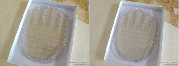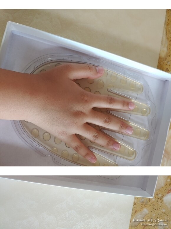 굳은 배지 위에 손바닥을 찍어 누르고...