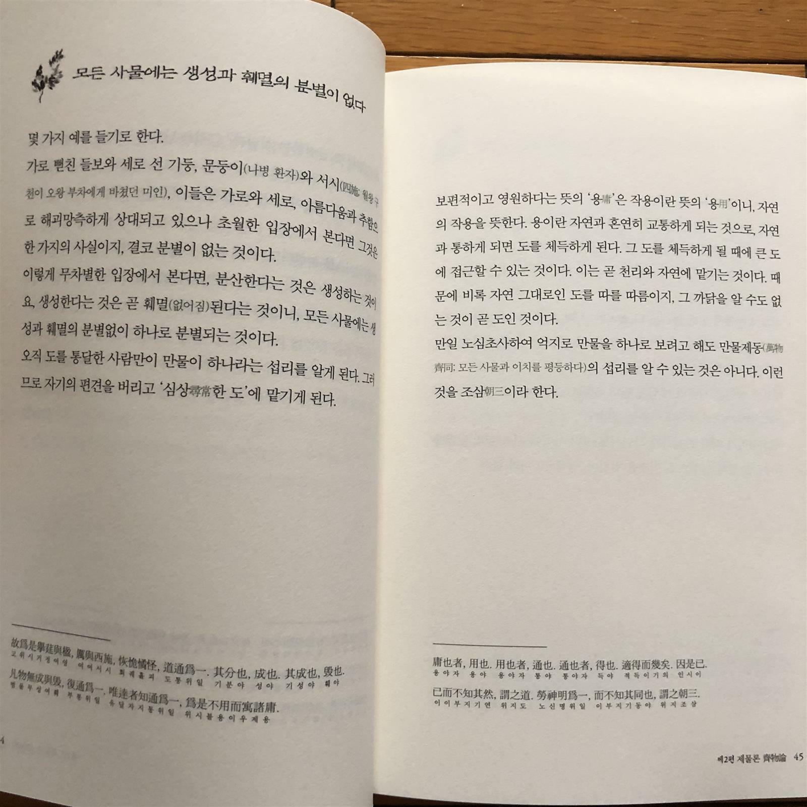 세상을 살다 보면 많은 어려움과 난관에 부딪혀 어찌할 바를 모르고 일이 더욱 어려운 지경에 도달할 때가 부지기수인데 이럴 때마다 차분한 마음으로 현실 속의 상황을 주시하며 문제를 해결하고 극복해 나간다면 최선의 결과를 가져올 것이라는 저자의 글에 전적으로 동감한다. 대다수의 사람들이 고전을 다소 딱딱하고 어렵다는 편견을 가지고 있는데, 고전을 완독하고 완벽히 이해하는 것에 초점을 맞추기보다는 고전의 한 구절에서라도 삶의 깨달음을 얻는다면 그것으로 충분할 것 같다. 앞으로도 기회가 된다면 다른 고전 시리즈들도 종종 탐독해봐야겠다.