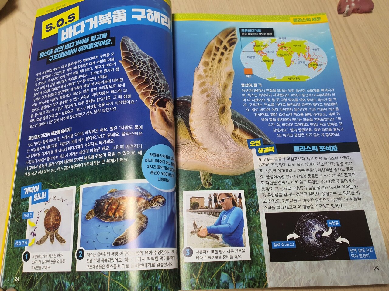 바다거북을 생생하게 담은 사진을 보면서 전에 티비에서 보았던 장면을 생각하며