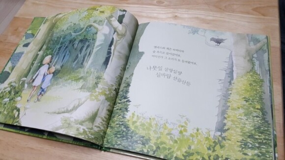 주인공인 남매엘리스와 잭은 마당에서 놀다가나뭇잎 살랑살랑실바람 산들산들 ♪어떤소리를 따라숲속으로 걸어들어가요
