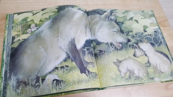 하지만 아가들한테 자장가를 불러주고 있는우리 엄마같은 부드러운 모습의 늑대랍니다무서운 이빨과 발톱의 늑대가 아니라서정적이고 정말 부드럽고 포근한 느낌모든 엄마들이 아기를 사랑하는 것처럼늑대에게서도 아기를 사랑하는 마음이 느껴졌어요