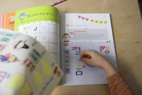 총 5권으로 되어 있는데1권 기본자 학습 12권 기본자 학습 23권 받침 학습4권 복잡한 모음학습5권 쌍자음 학습과 총정리 1,2단계별로 체계적으로 엄마표로 해나가기 좋은 한글학습지예요