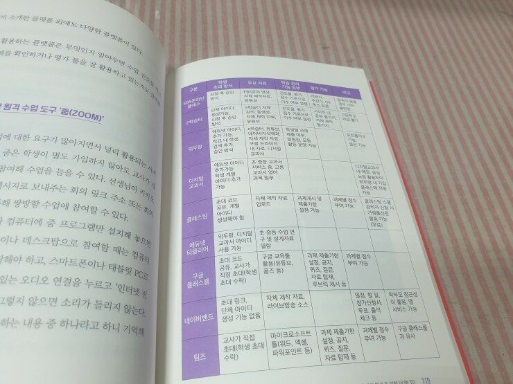 Part 4에 보면 초등학교에서 많이 사용하는 원격수업 도구에 대해 정리한 부분이 나와요.