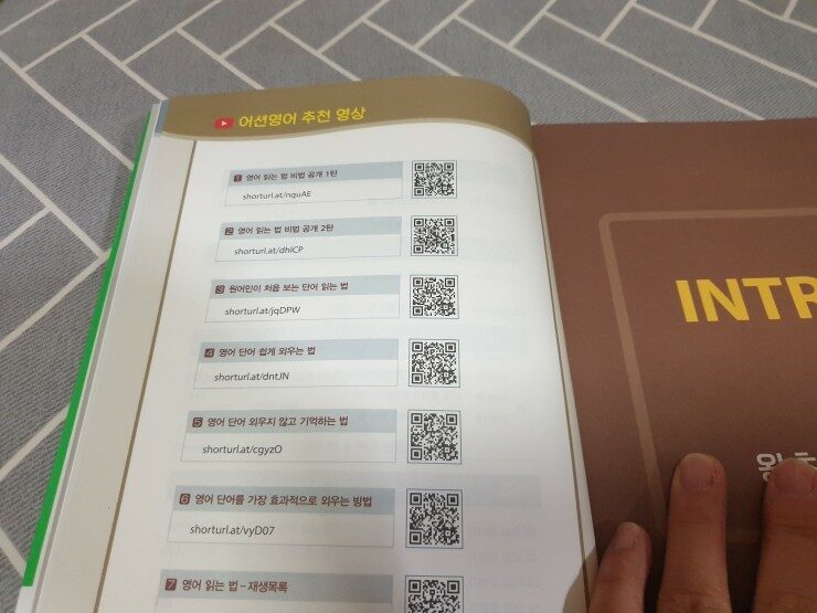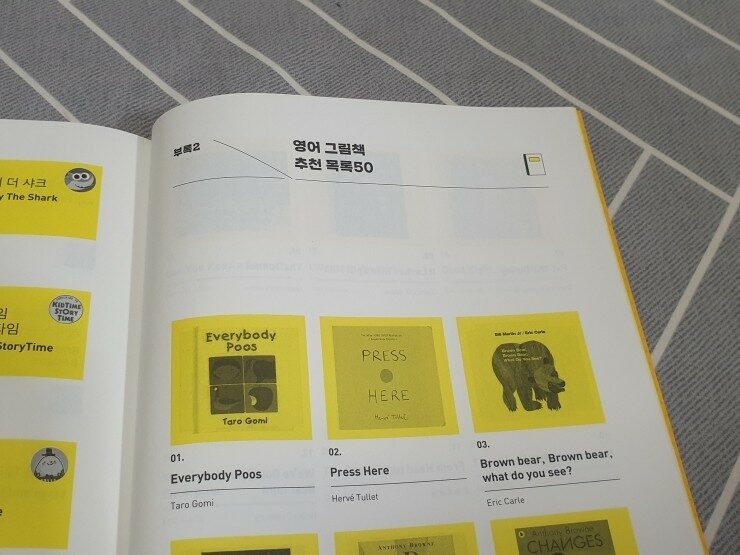 맨 뒷쪽에는 추천 영상과 추천 그림책, 사이트워드가 나와있어요.