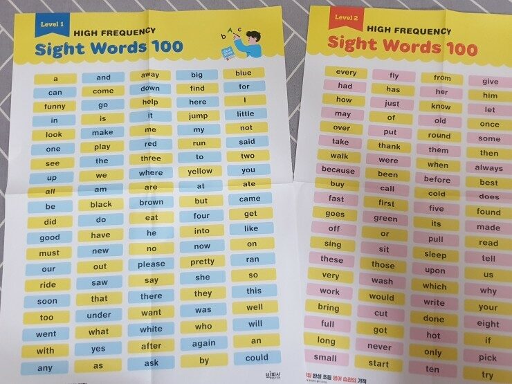 그리고 사은품으로 사이트워드 포스터가 두 장 들어있어요^^
