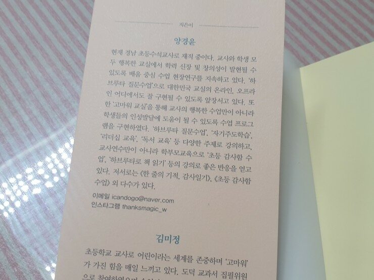 이 책은 양경윤, 김미정 두 초등학교 선생님께서 쓰진 책이예요.