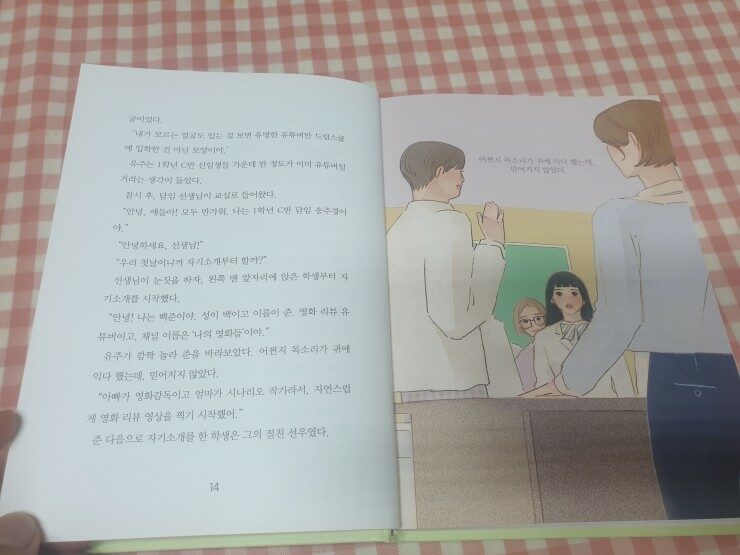 교실에 들어오니   자신이  즐겨보던   유투브  채널의   "오수빈"도 있는 것을  보고  놀래요.