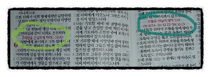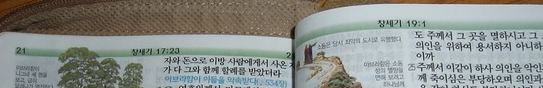 성경 중간 중가 나오는 관주의 색이 이전 성경에서 보던 눈에 잘 띄지 않는 검정글씨가 아닌 칼라 관주라 눈에 잘 뜨인다. 이전엔 성경을 보면서 관주를 찾으려면 검정글씨에 작은 표시라 찾느라 한참이 걸렸는데 이젠 그러지 않아도 된다. 하단에 있는 난하주도 마찬가지다.