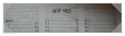 지금 몇장 몇절 부터 시작되고 있는지를 표시해 주고 있는데 일일이 처음과 끝을 살펴 보지 않아도 이것만 보아도 페이지의 시작과 끝부분을 알 수
