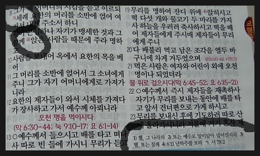 4복음서는 소주제 옆에 같은 구절이나 연관된 구을 칼라로 표시해 주고 있어서 읽으면서 같은 구절에 관심이 갈 때 찾아볼 수 있는데 4복음에서는 이것이 중요한 것인데 너무 좋은 생각인것 같다.