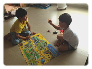 형아가 도착하자 열심히 장난감 설명중이신 쭌군 ^^