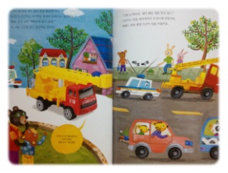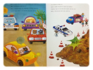 경찰차 삐뽀, 굴착기 힘찬이, 불자동차 키큰이, 구급차 애앵이